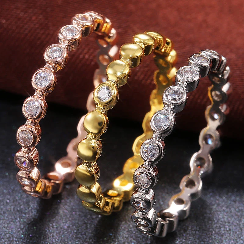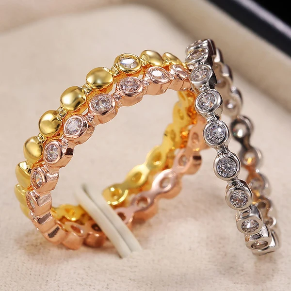 Anel feminino com proposta de presente de aniversário com zircónias incrustadas, moda europeia e americana, best-seller