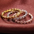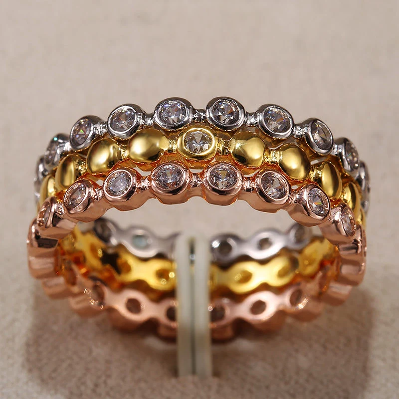 Anel clássico de quatro garras com microincrustações de zircónias sintéticas, anel de braço torcido de duas cores com fileira dupla para mulher, anel de noivado e casamento