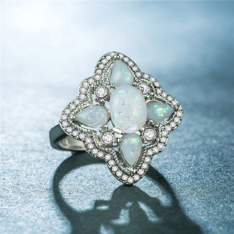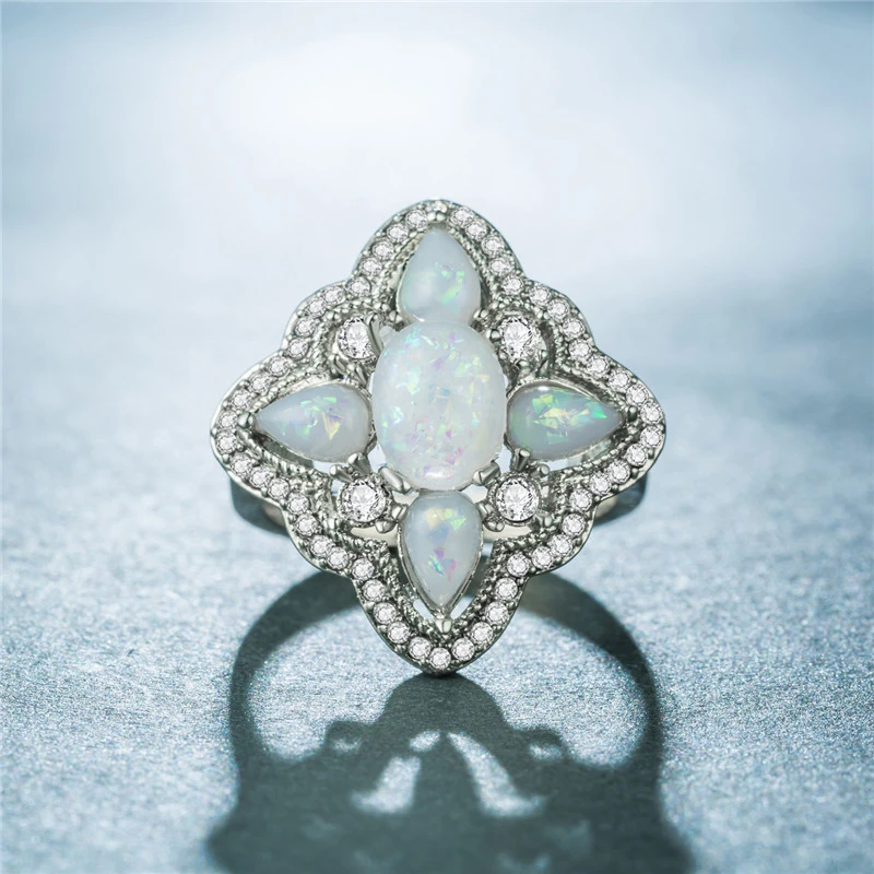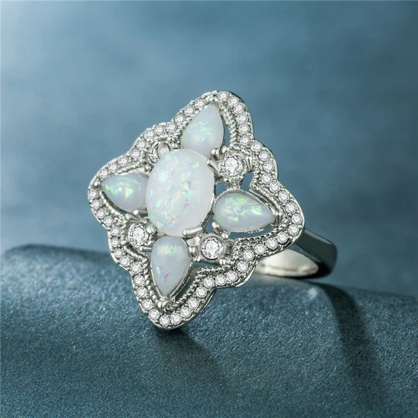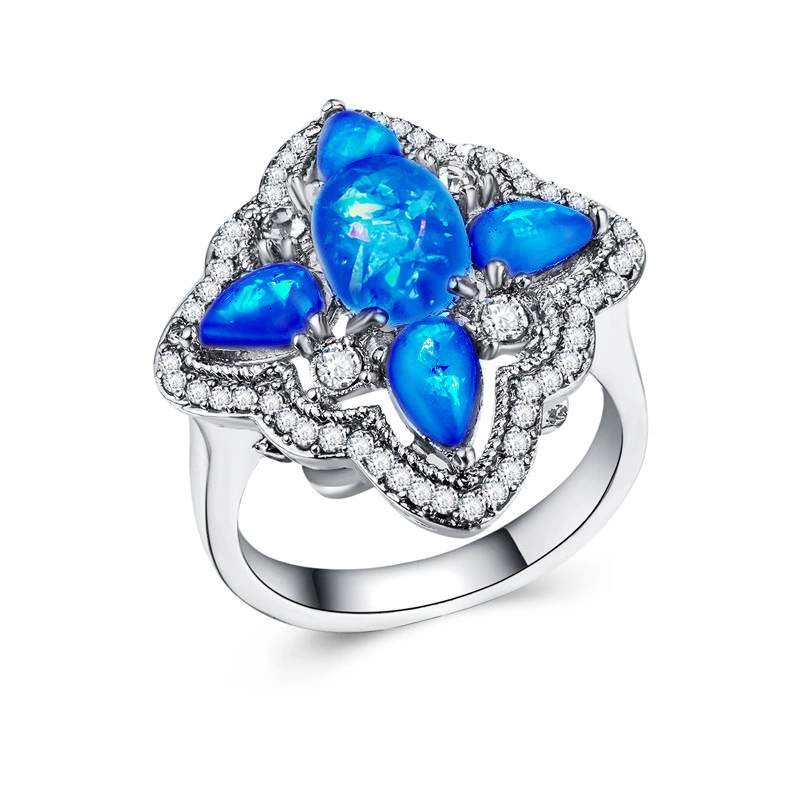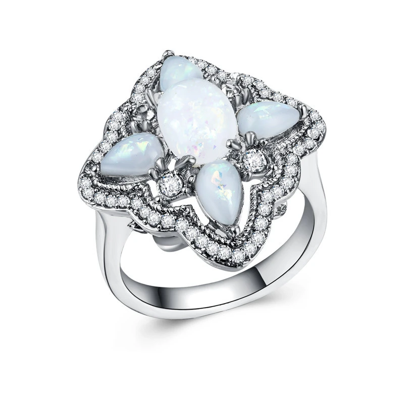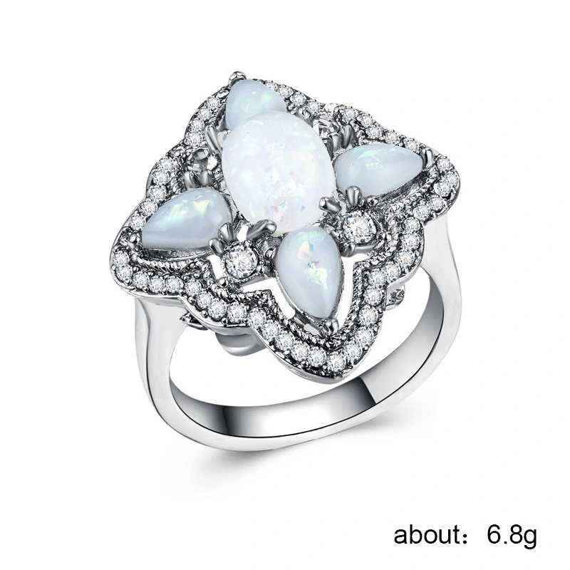 Anel feminino de opala novo estilo, anel de opala oval em forma de lágrima popular, fornecimento direto da fábrica, pedido mínimo de uma peça