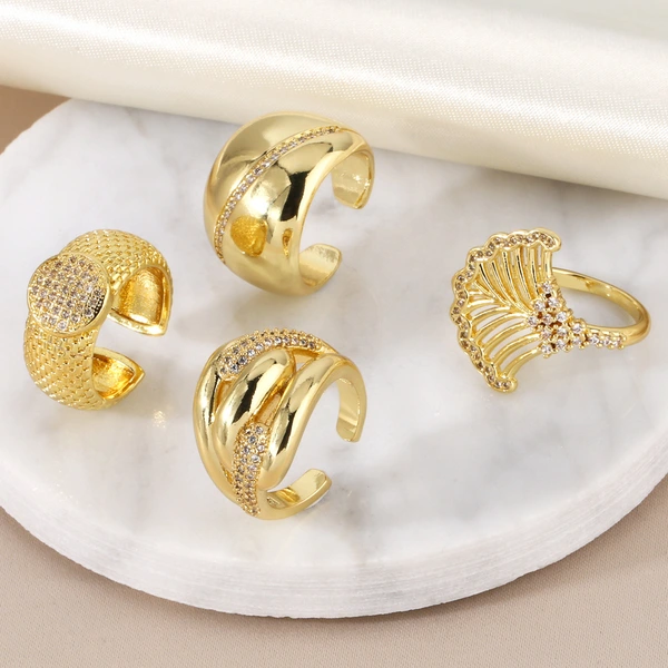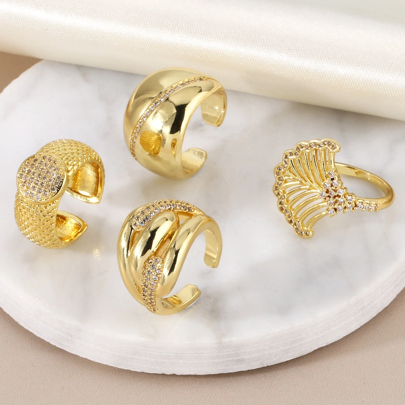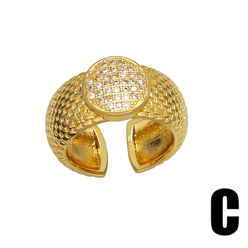 Anel geométrico redondo com zircônia incrustada, mais vendido, feminino, europeu e americano, simples, banhado a ouro, anel aberto rip54