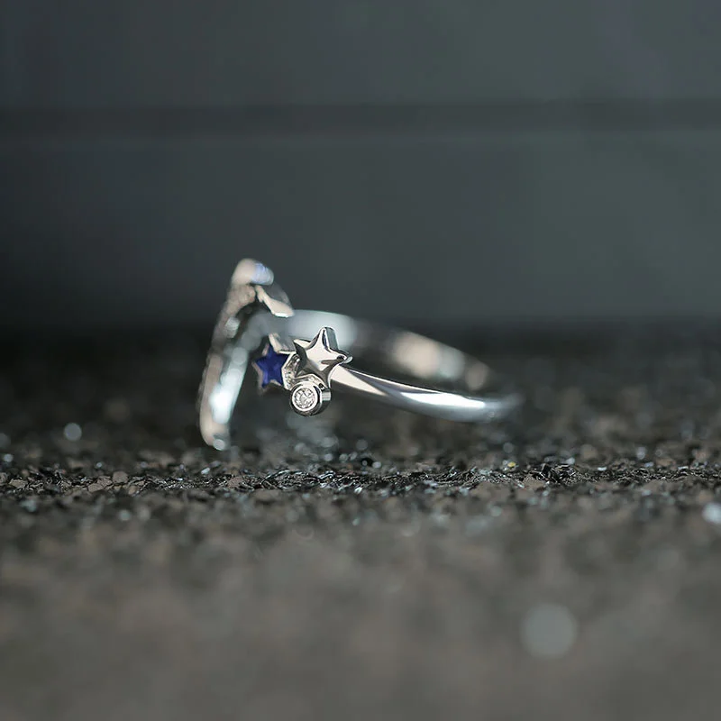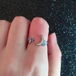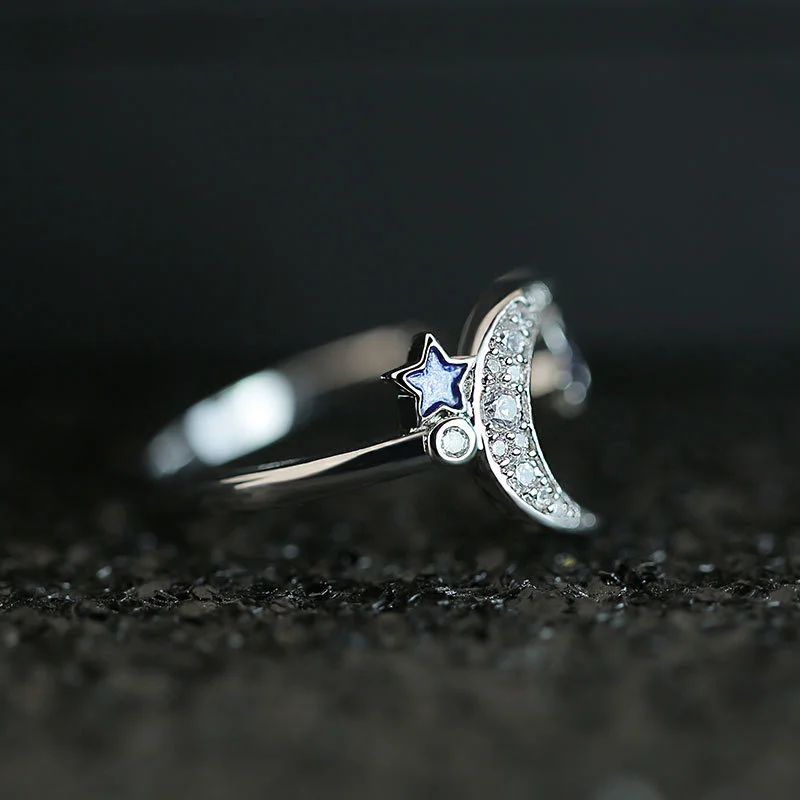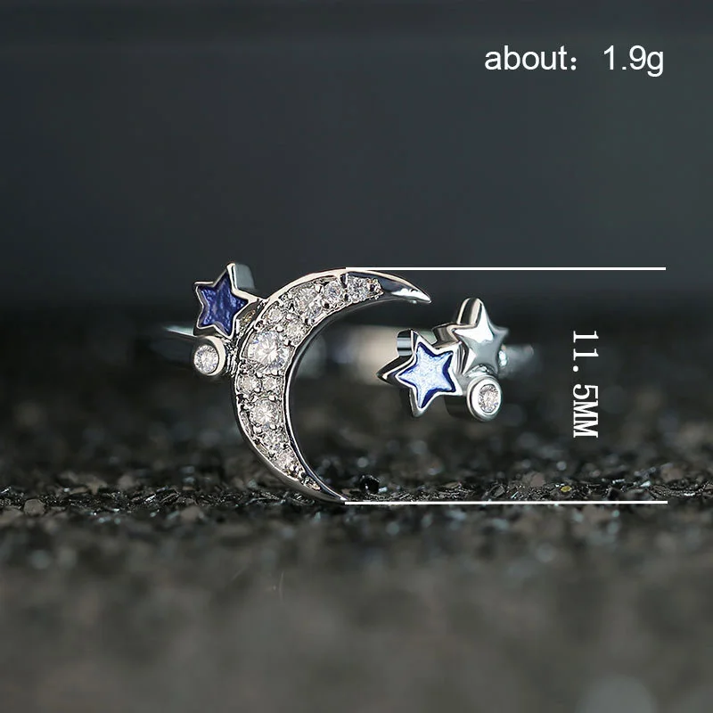 Anel japonês e coreano com abertura ajustável, estrela e lua em zircónia, presente de aniversário para namorada