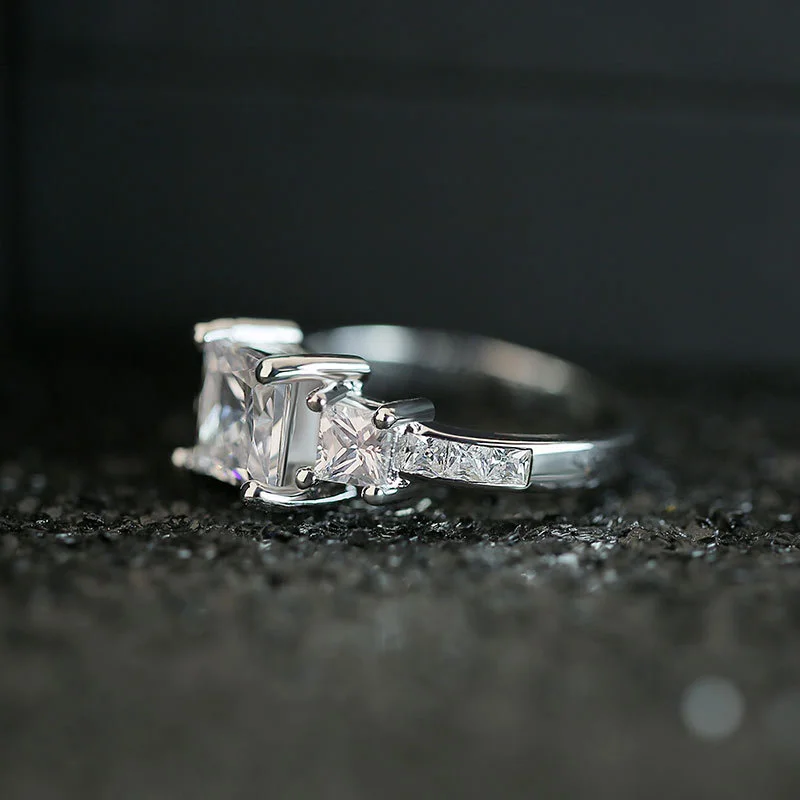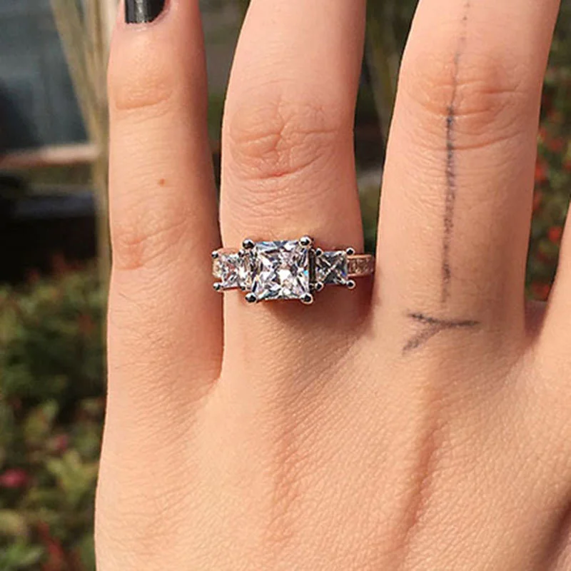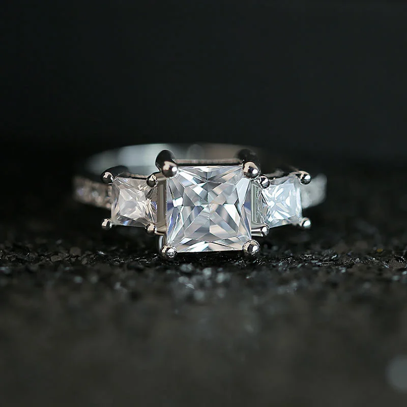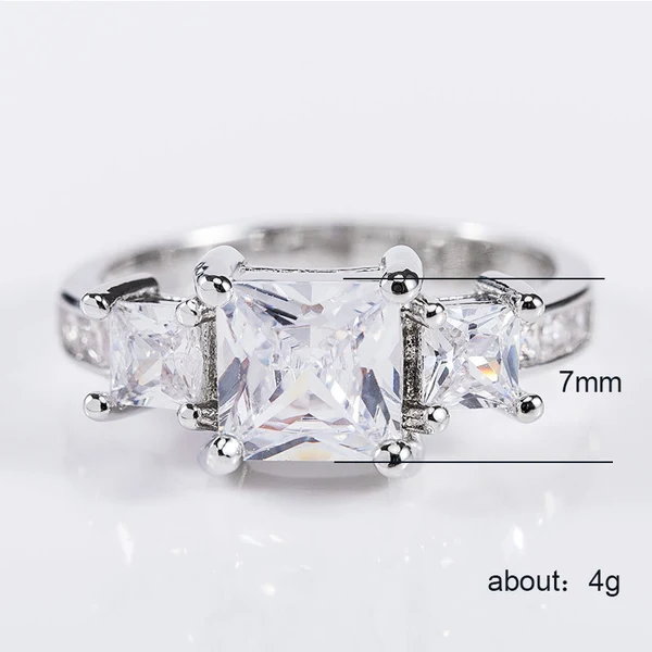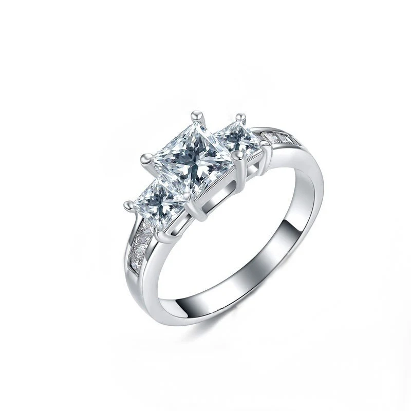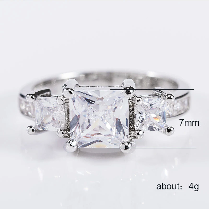 Anel quadrado de princesa novo, best-seller, estilo europeu e americano, com zircónias incrustadas, joalharia feminina, anel de noivado