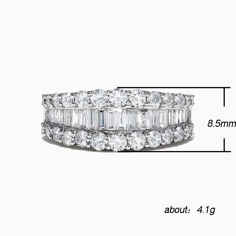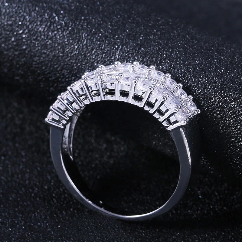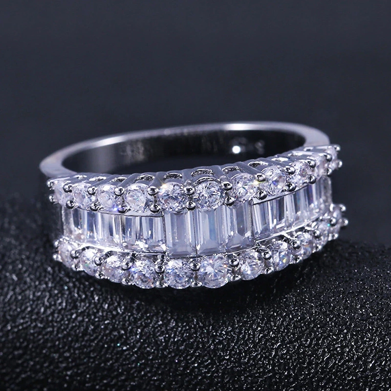 Anel novo de venda quente banhado a cobre ouro branco anel de diamante de luxo cheio de diamantes t quadrado zircão anel feminino