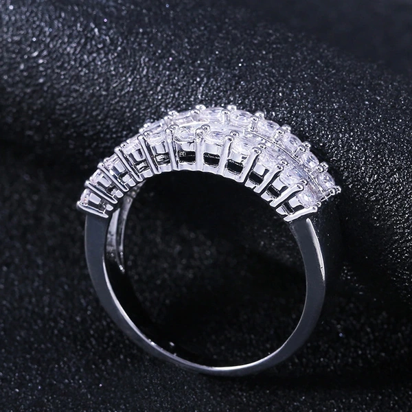 Anel de casamento clássico com seis garras de zircónia, estilo celebridade, microincrustado, leve, luxuoso, estilo europeu e americano