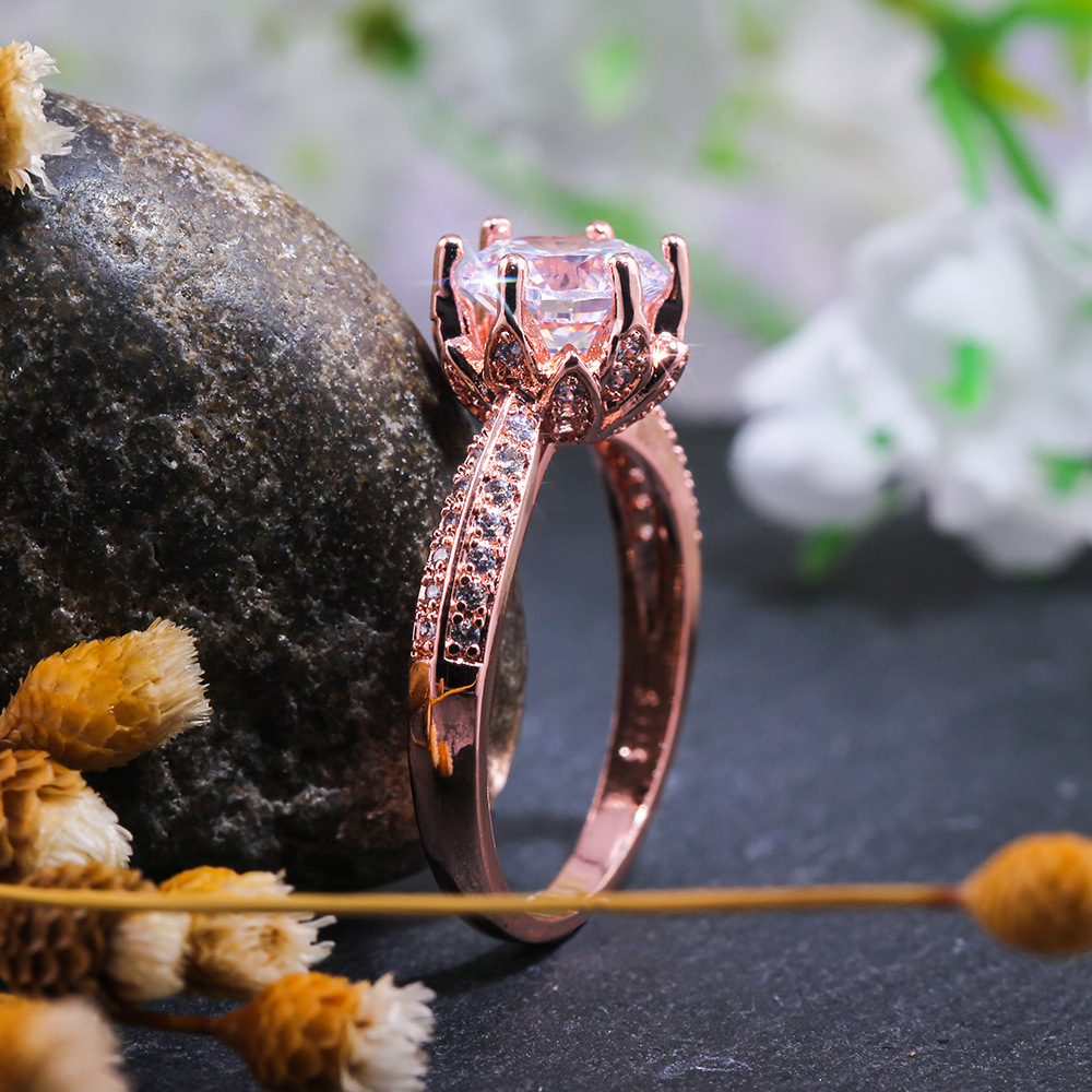 Anel de zircónia banhado a ouro rosa de cobre, criativo e mais vendido, joias de venda direta da fábrica