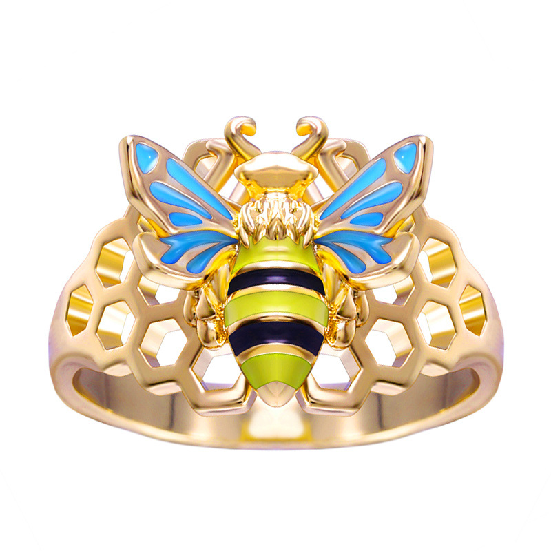 Novo anel criativo de abelha oco em forma de favo de mel, joia geométrica de anel de inseto para dedo, atacado