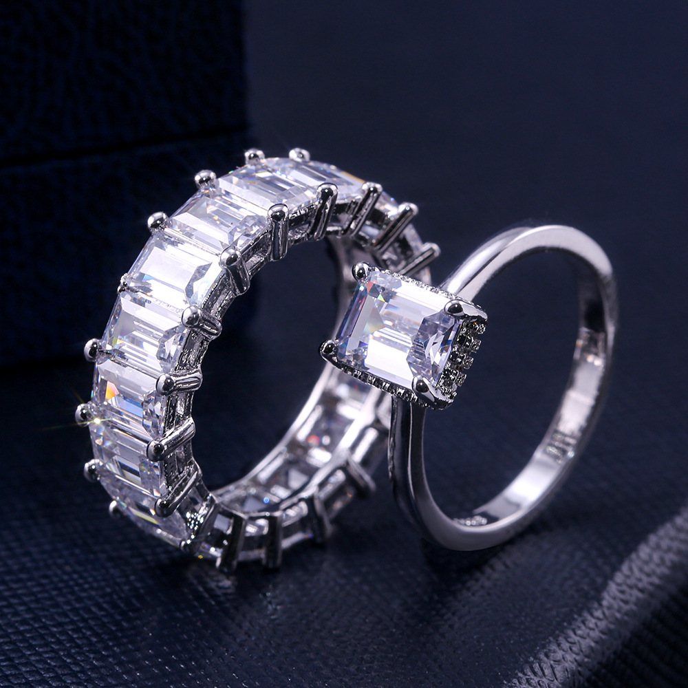 Anéis de casamento populares, elegantes e simples, anéis clássicos ovais quadrados de diamante e zircónia, fabricantes de anéis de casamento por grosso