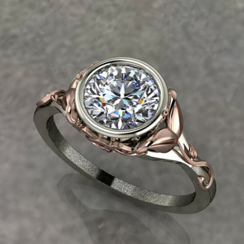 Anel de noivado feminino com diamante espelhado clássico bicolor, novo, europeu e americano, mais vendido