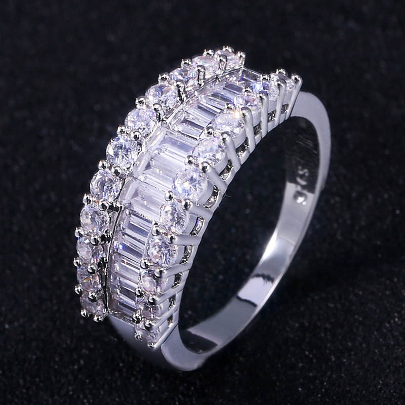Anel novo de venda quente banhado a cobre ouro branco anel de diamante de luxo cheio de diamantes t quadrado zircão anel feminino