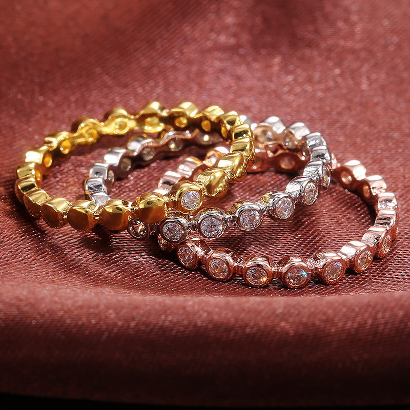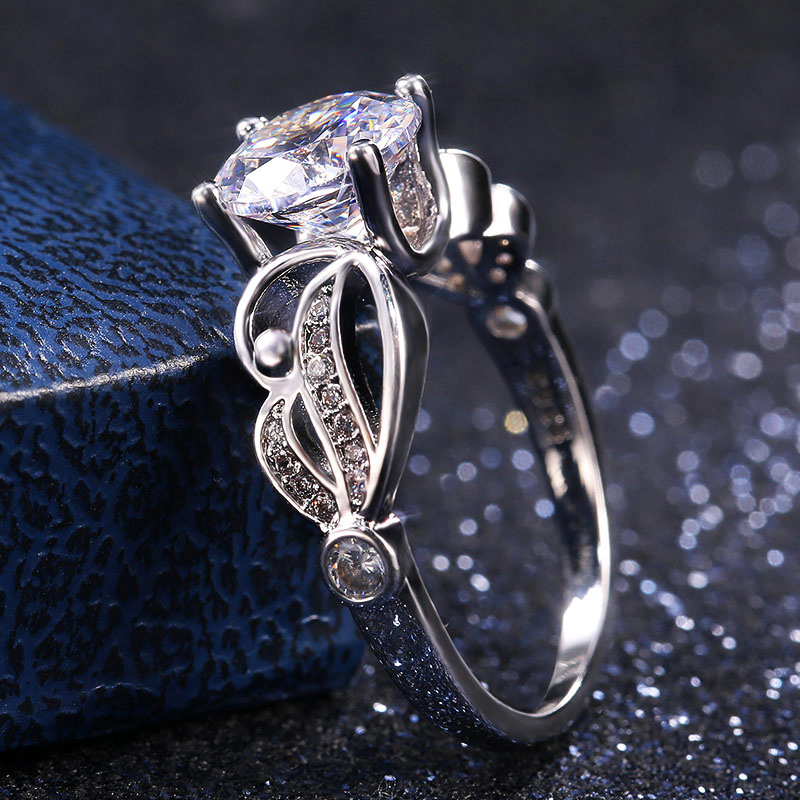 Anel de noivado com zircónia incrustada europeia e americana, venda quente de joias para as mãos, comércio eletrónico