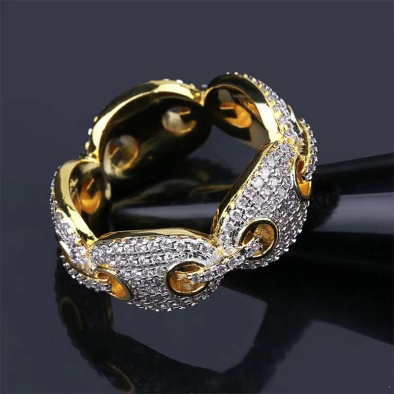 Anel de dedo indicador hip-hop com micro-incrustações de cristal, novo sucesso de vendas na moda europeia e americana