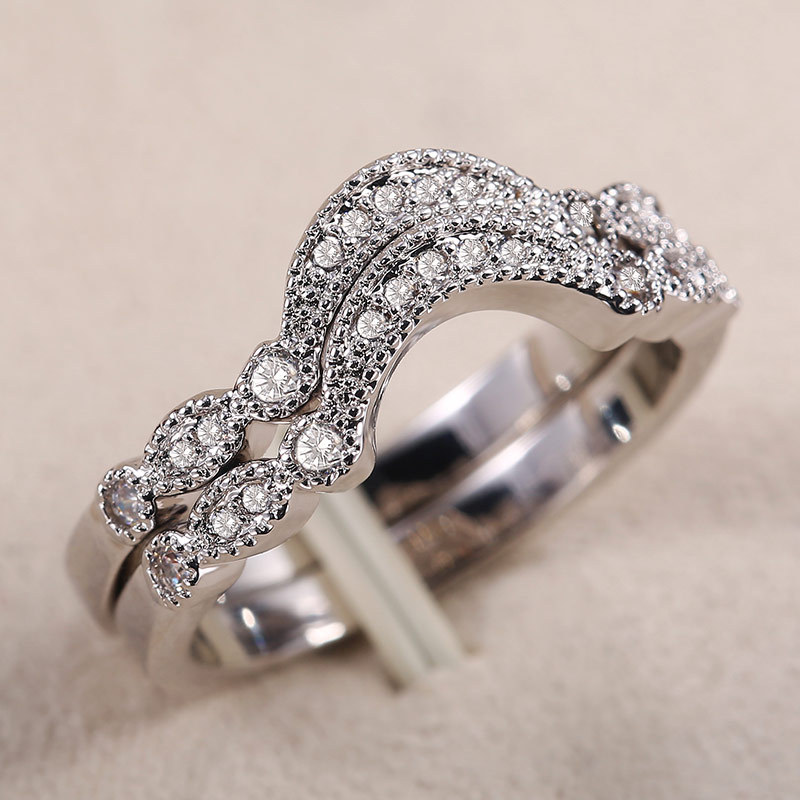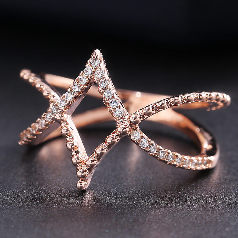 anel de diamante em forma de V com diamantes em ouro rosa criativo europeu e americano