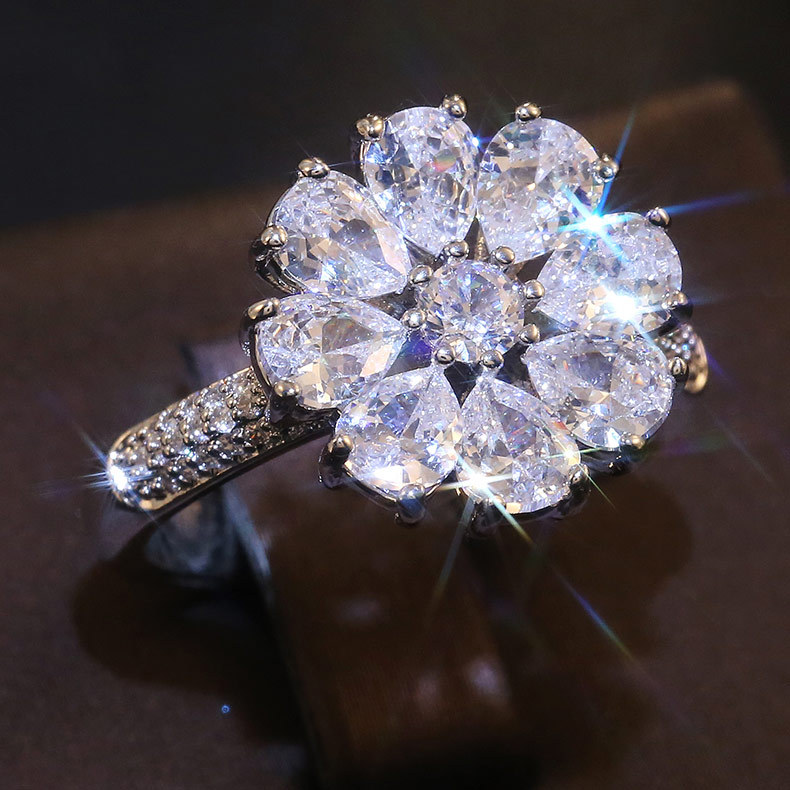 Anel de zircónia cúbica com flores e joias da moda, feminino, europeu e americano, charme requintado, joias para mulheres, todas as combinações