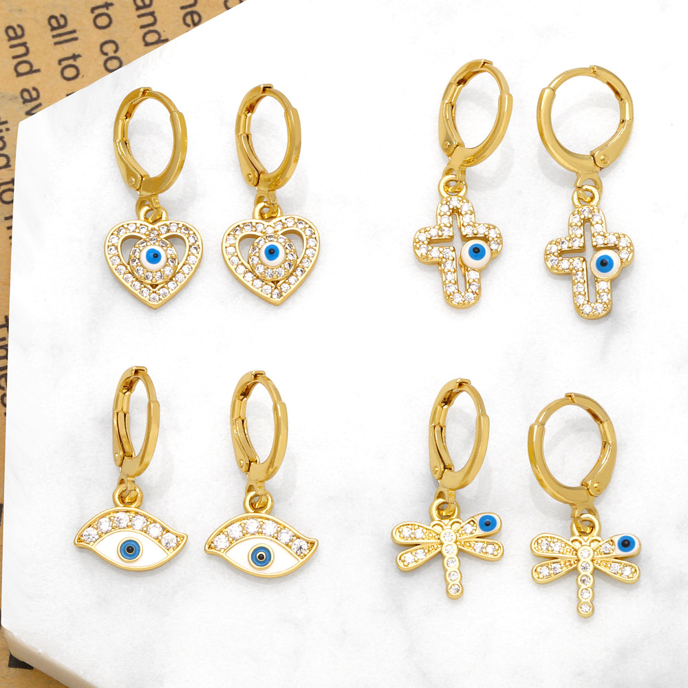 Brincos de olho de diabo em cruz de personalidade estilo europeu e americano, design de nicho feminino, brincos de amor de lua ert61