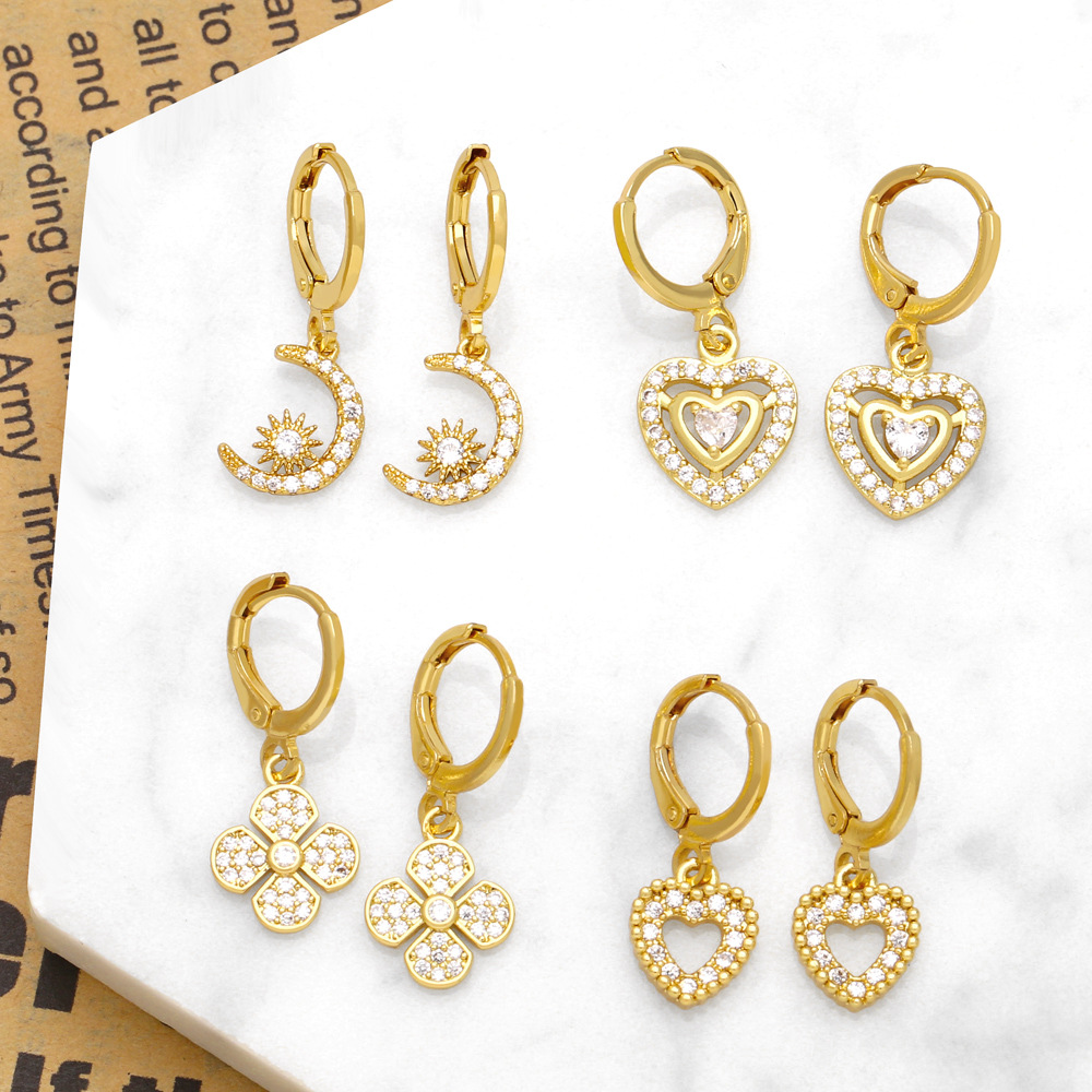 Brincos de coração de amor de joias europeias e americanas, simples e elegantes, banhados a cobre, brincos com pingente de estrela de ouro 18k erv35