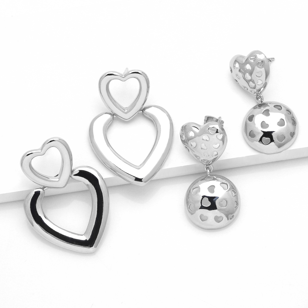 Brincos de amor europeus e americanos, simples, de personalidade, versáteis, retrô, redondos, com pingente de coração, estilo pêssego, feminino ery67