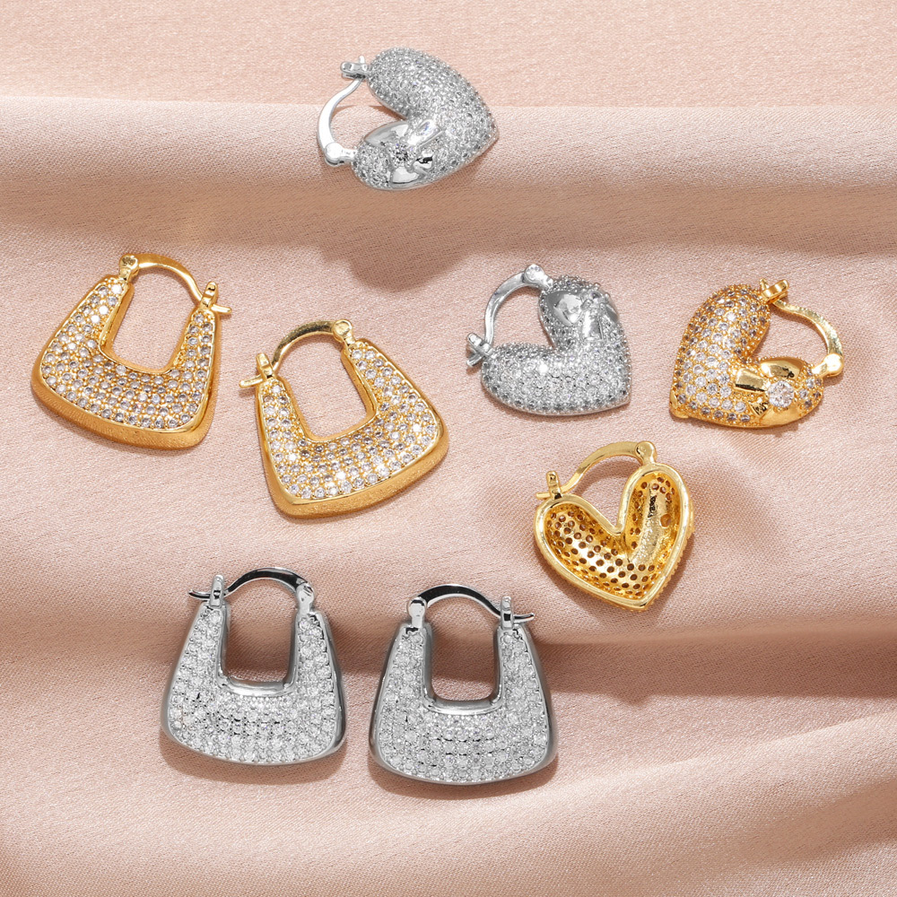 Brincos de coração com zircônia incrustada, estilo europeu e americano, simples, de nicho, leves, luxuosos, banhados a ouro, erz31
