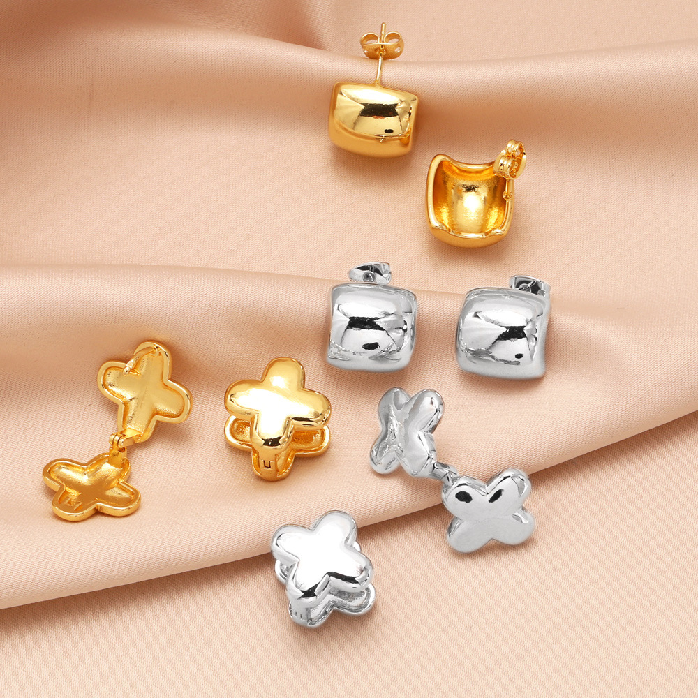 Brincos de cruz simples europeus e americanos, brincos de nicho femininos, luxuosos e sofisticados, banhados a ouro, joias para orelha erz36