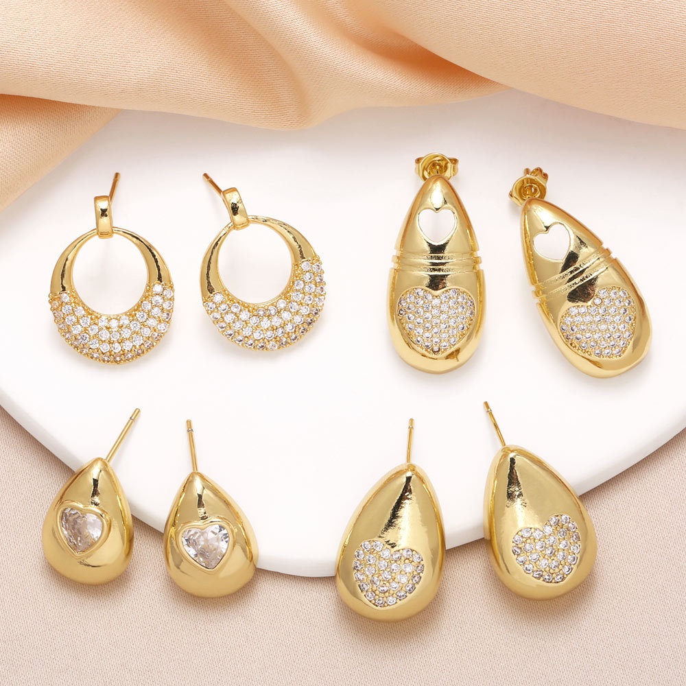 como joias mais vendidas brincos de coração para mulheres brincos de cobre banhados a ouro 18k com zircônia completa era336