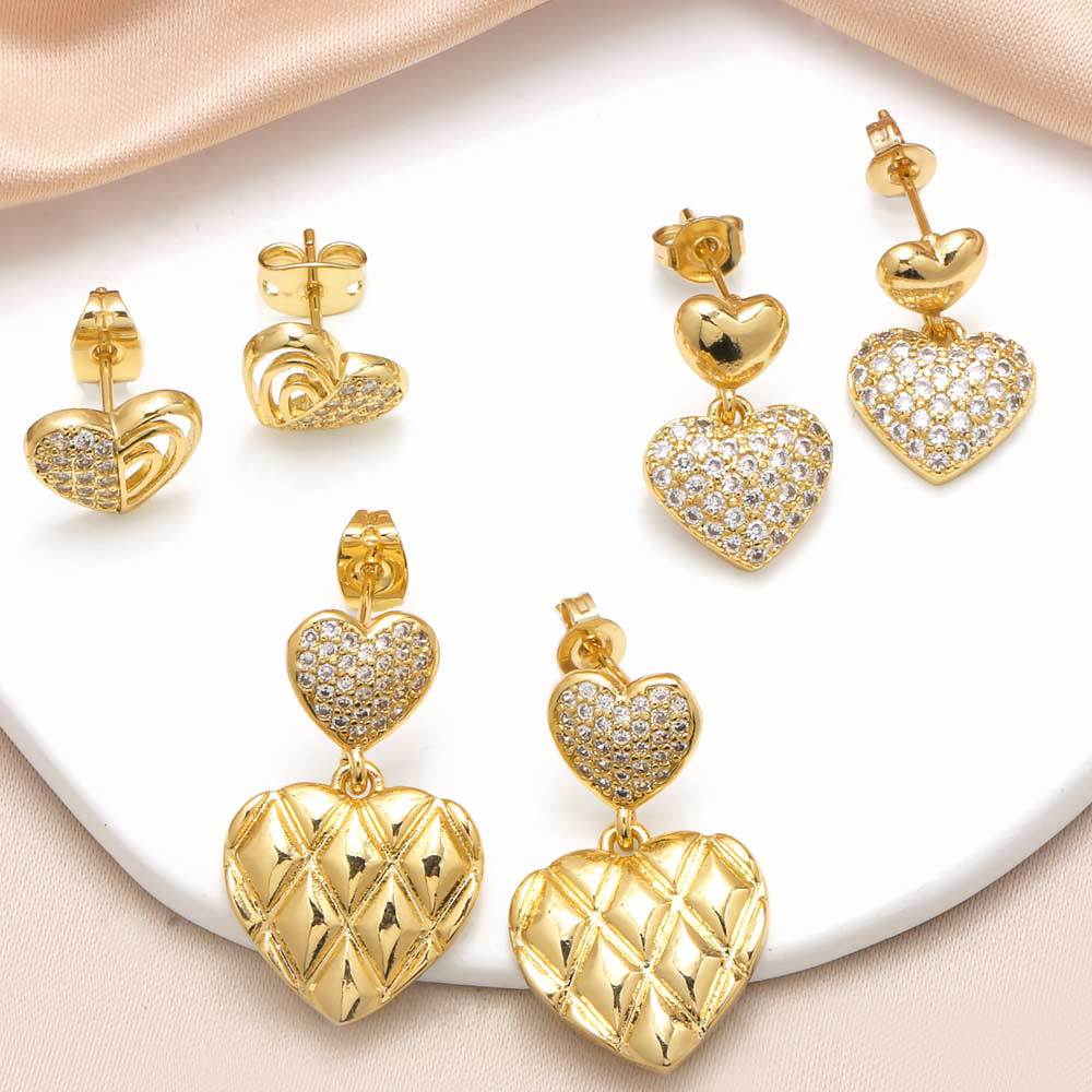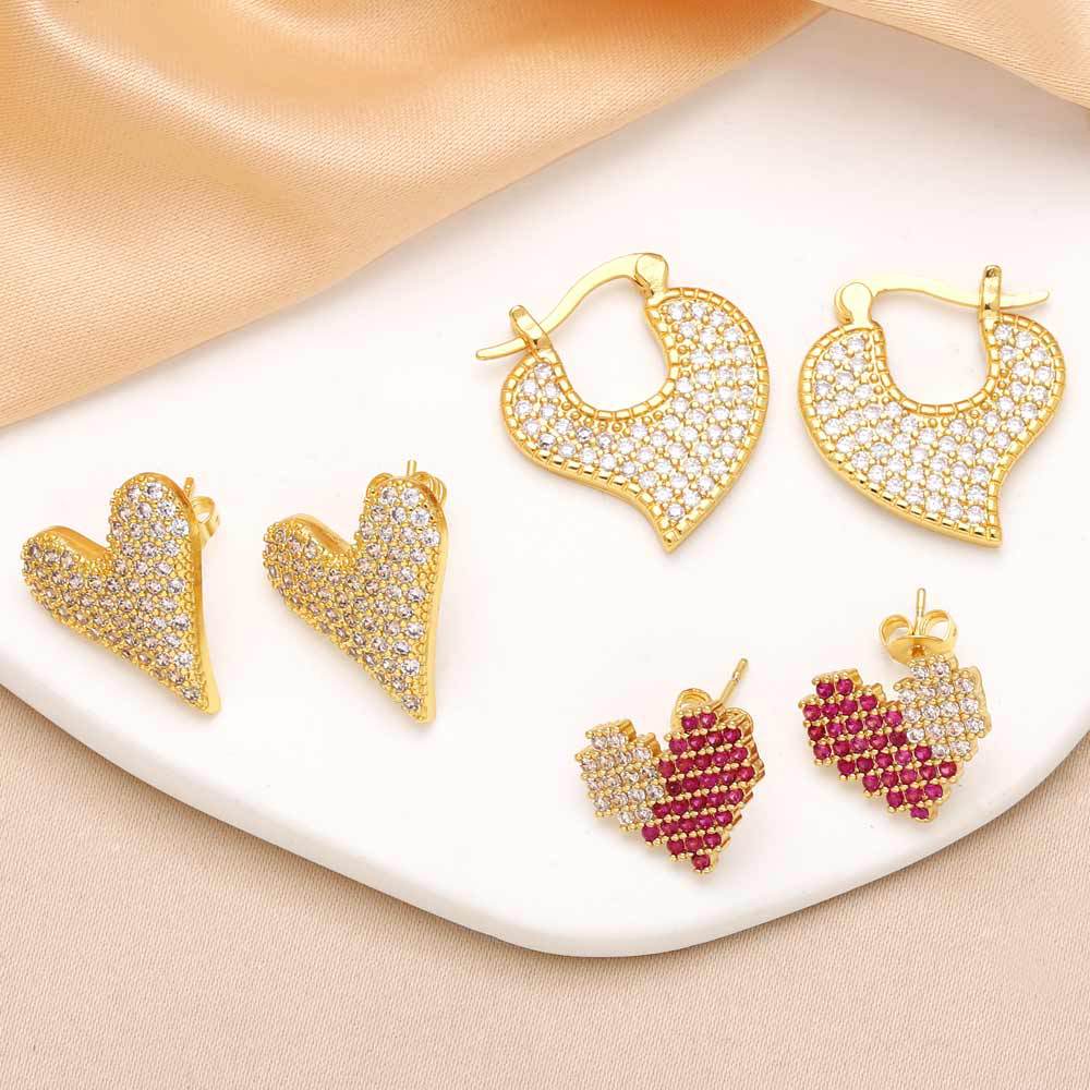 como joias europa e estados unidos brincos de coração mais vendidos brincos femininos banhados a cobre brincos de coração com zircônia incrustada em ouro verdadeiro era357