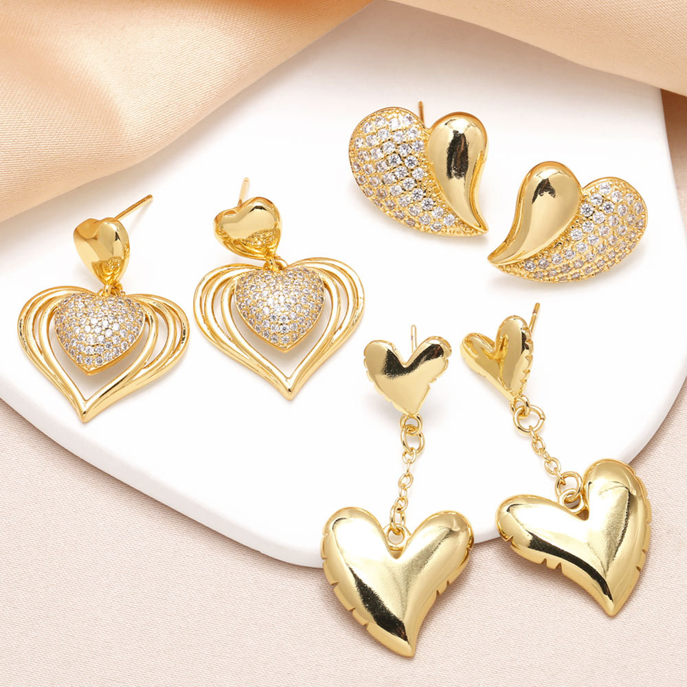 como joias brincos pingentes de coração de amor europeus e americanos brincos femininos banhados a ouro brincos em forma de coração de zircônia erq66