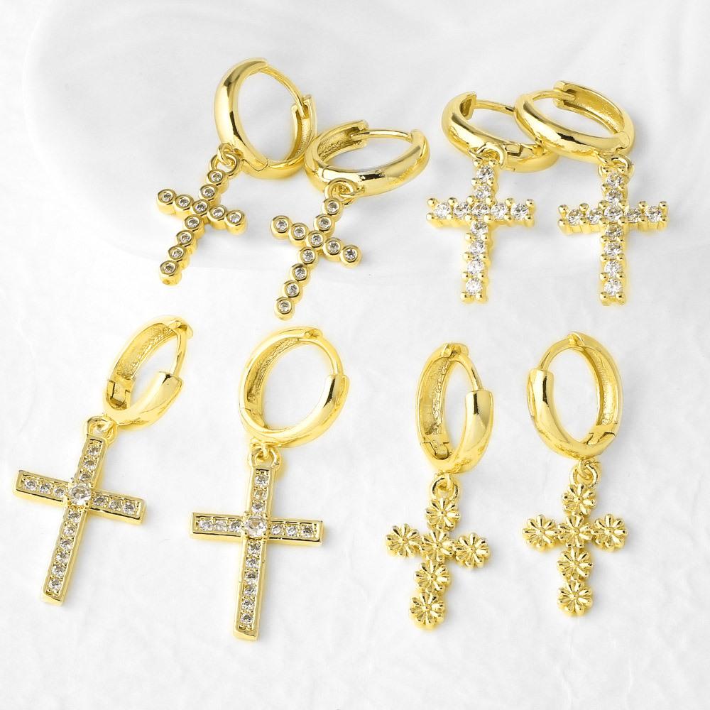 como joias novo nicho design brincos de cruz banhados a cobre 18k ouro era059