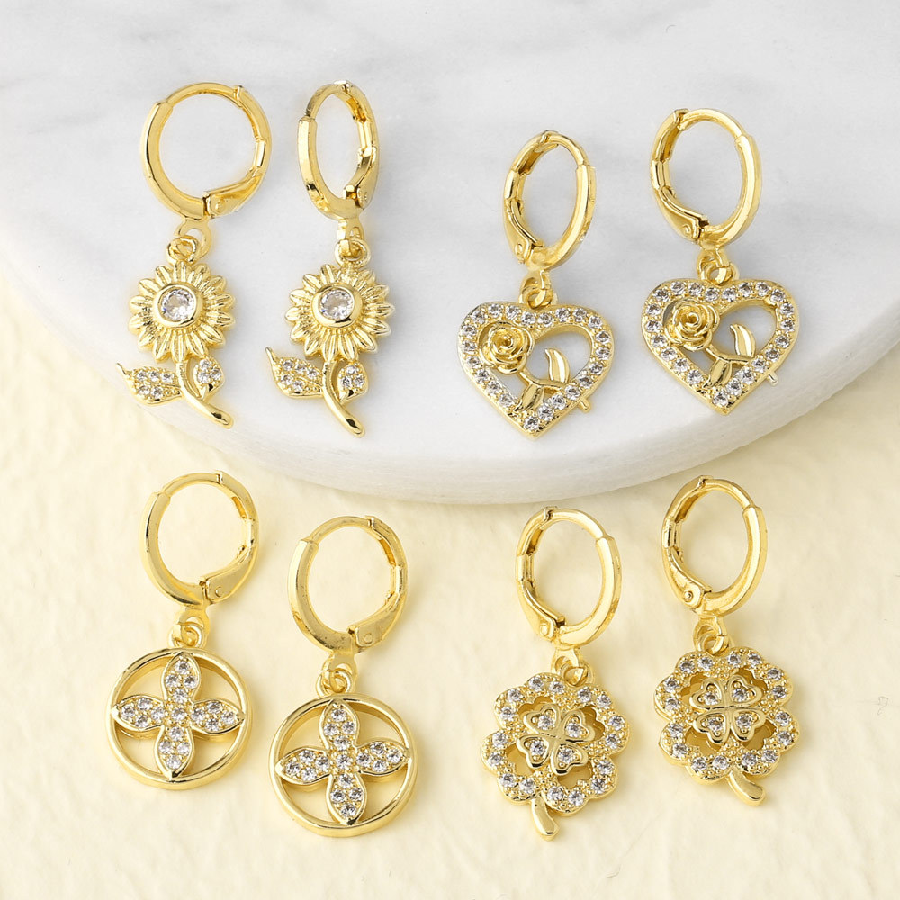 como joias novas mais vendidas brincos pingentes de flores de zircônia cheias brincos era104