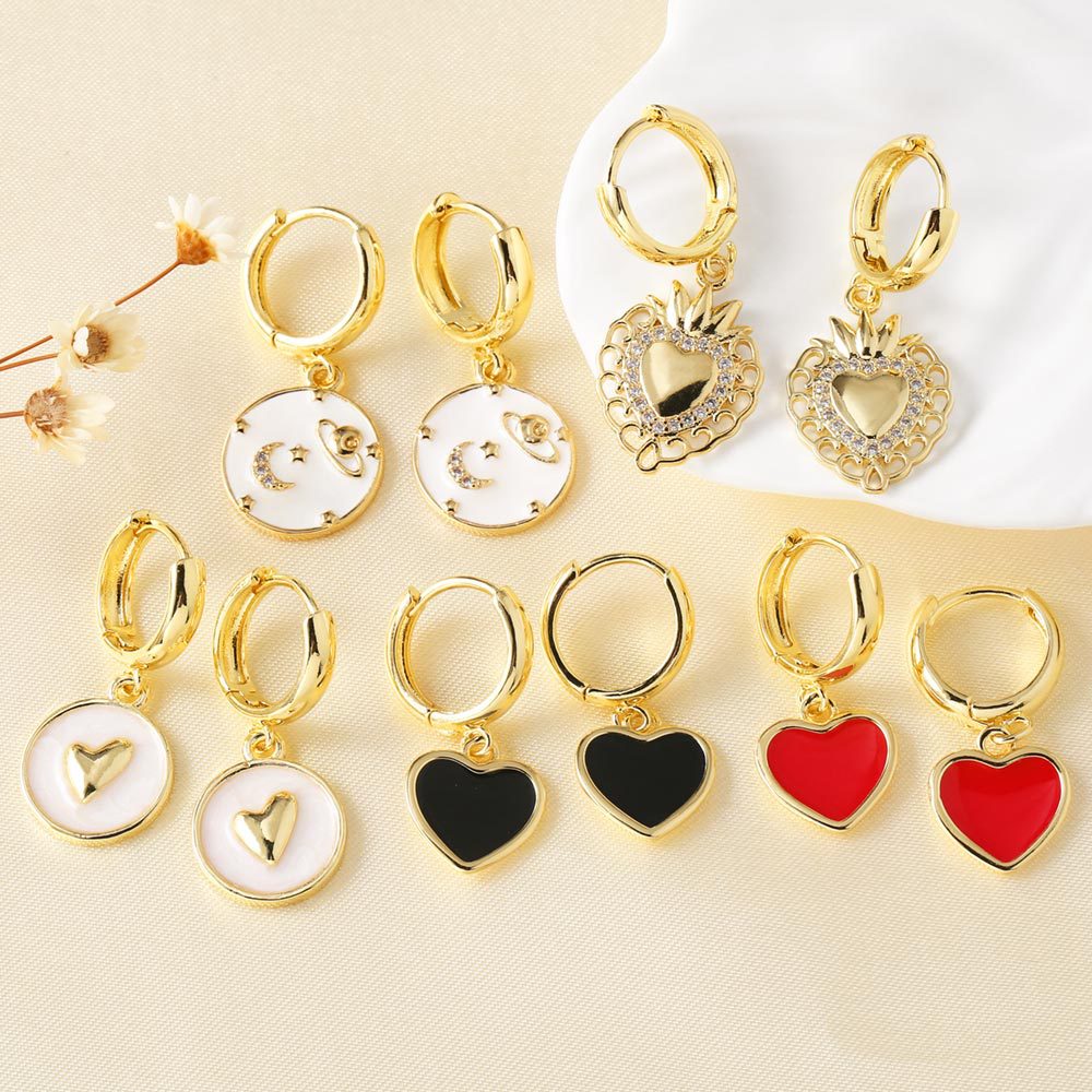 como joias europeias e americanas simples venda quente amor em forma de coração pingando cobre banhado a ouro verdadeiro brincos brincos brincos era142