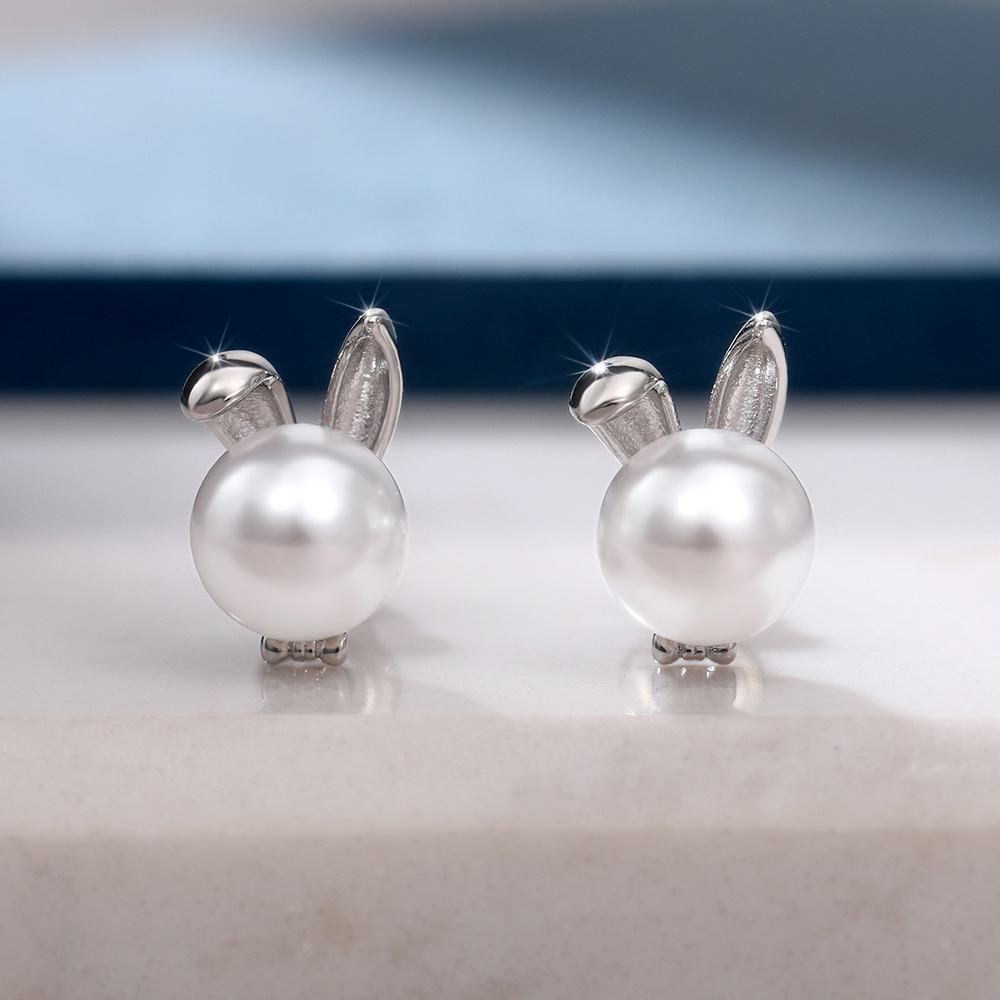 Brincos de venda quente ao vivo, brincos fofos de orelhas de coelho, brincos de pérolas de imitação para mulheres, brincos de moda simples e versáteis