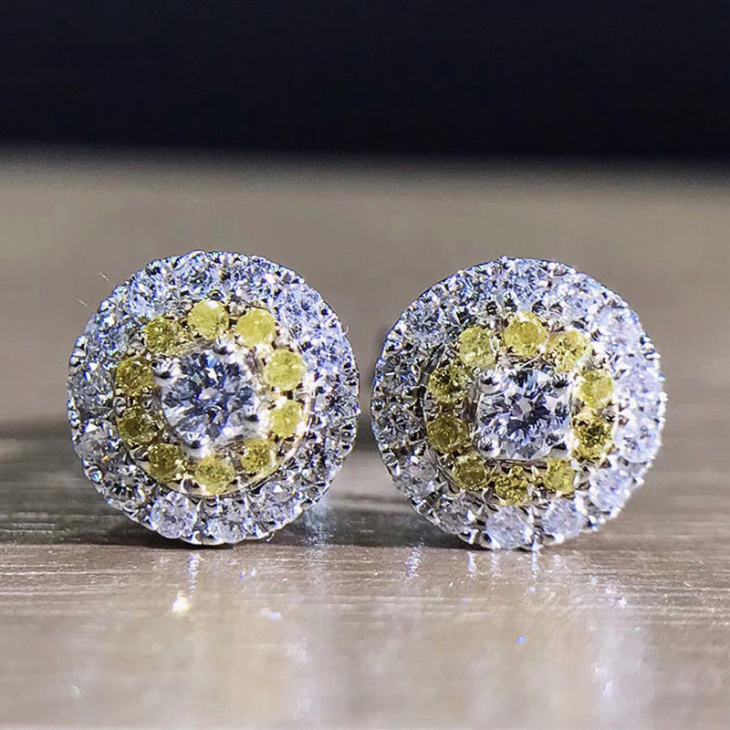 brincos de novo estilo com diamantes amarelos e zircónias, brincos de pedras preciosas coloridas da fábrica de origem