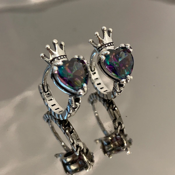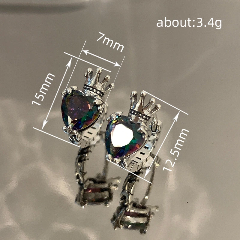 Brincos coloridos de coroa retro com design exclusivo, brincos leves e luxuosos de luxo com clipe de orelha real para mulheres