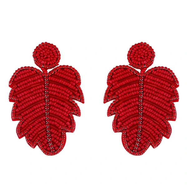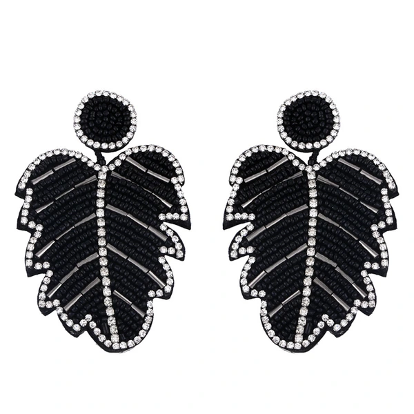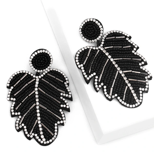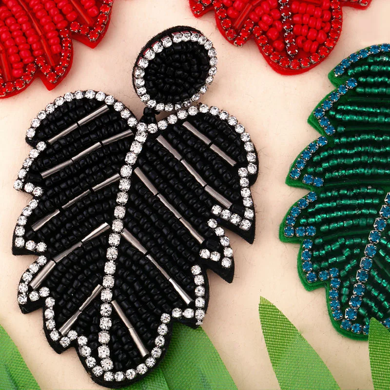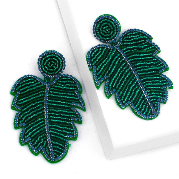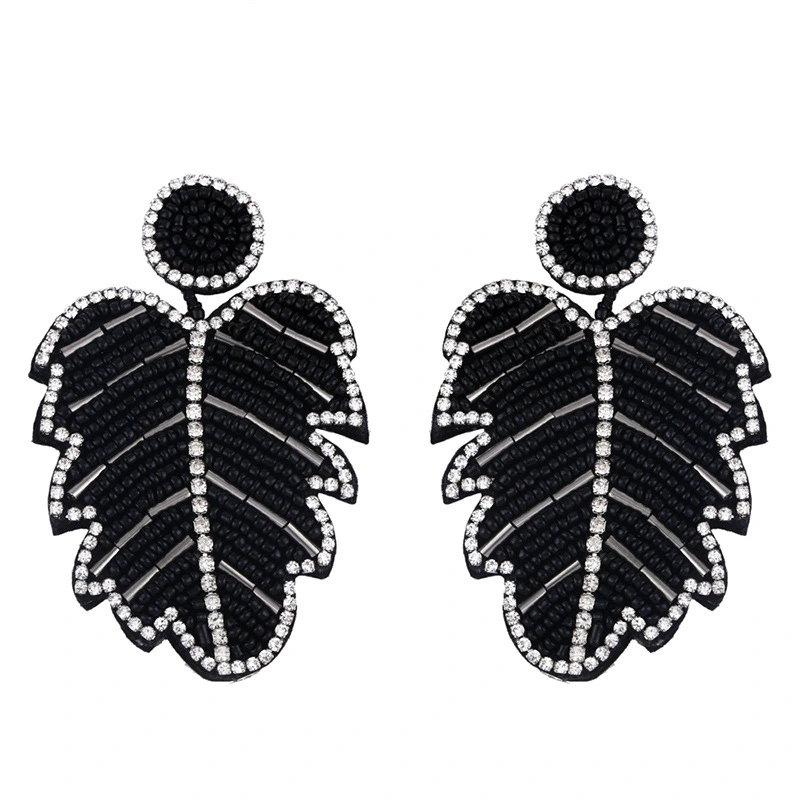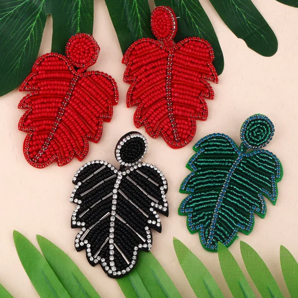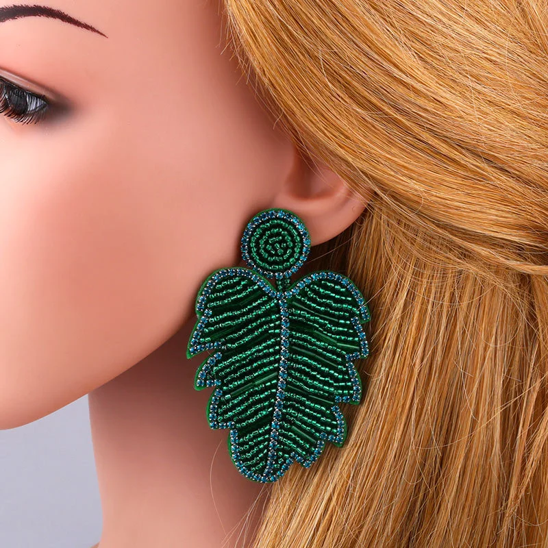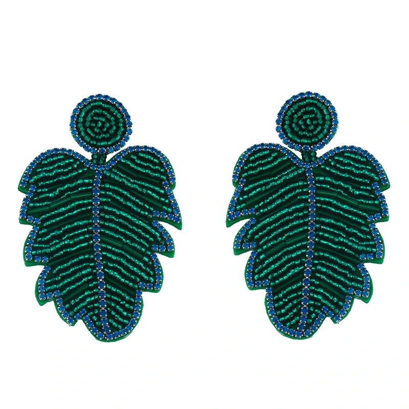 Brincos criativos de folhas boêmias em liga de diamantes e contas de arroz em cristal, brincos de personalidade feminina err82 com borla