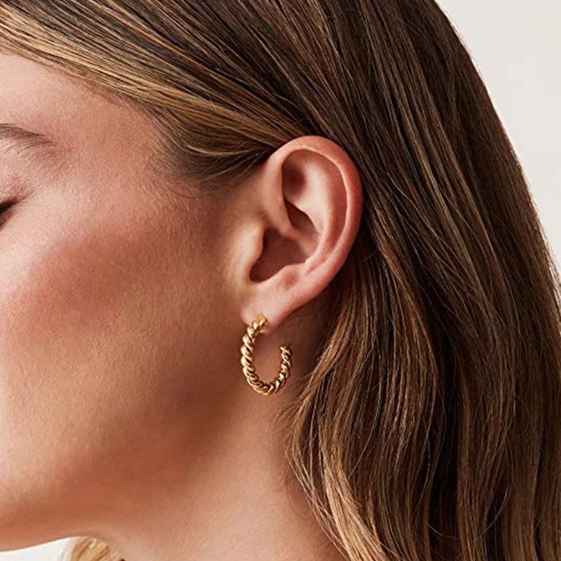 Brincos criativos em forma de C, geométricos e torcidos, mais vendidos na Europa e América, brincos de metal simples, vendas diretas da fábrica