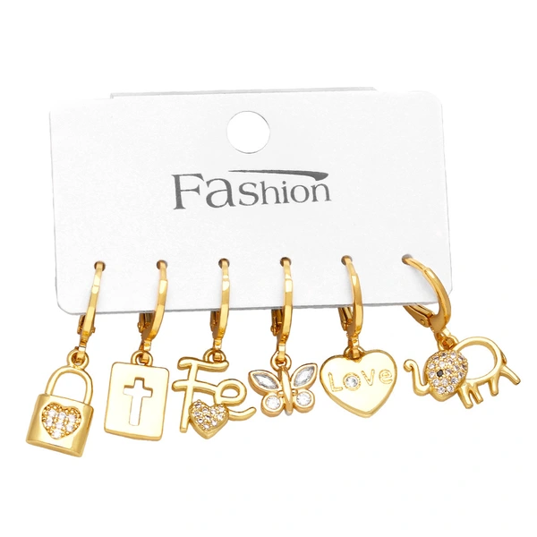 Brincos criativos europeus e americanos de seis peças, brincos femininos de zircônia, brincos geométricos de borboleta, era175
