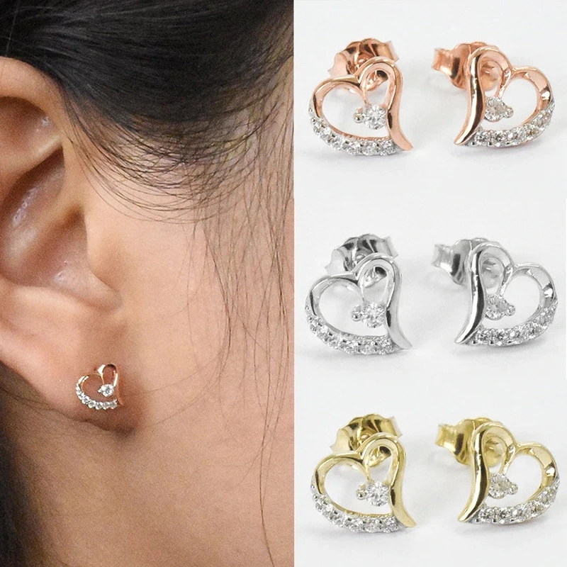 brincos criativos para namorada, brincos fofos e doces em forma de coração, brincos versáteis com personalidade vazada e microincrustada