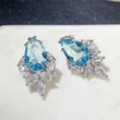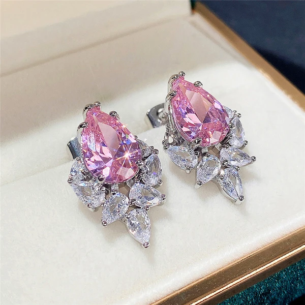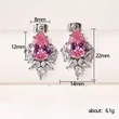 Brincos da série tesouro colorido 2022, brincos em formato de lágrima de diamante rosa para mulheres, brincos requintados de zircônia com flor de gelo