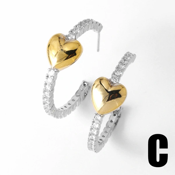 Brincos de alta qualidade para serviços pesados, totalmente incrustados, luxuosos brincos de coração em forma de C, brincos de moda europeus e americanos