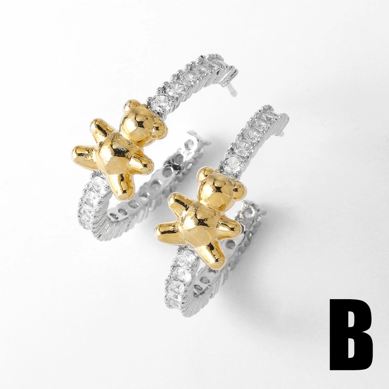 Brincos de amor em formato de estrela de cinco pontas banhados a ouro com zircônias, brincos de cruz de urso, joias europeias e americanas, erz29
