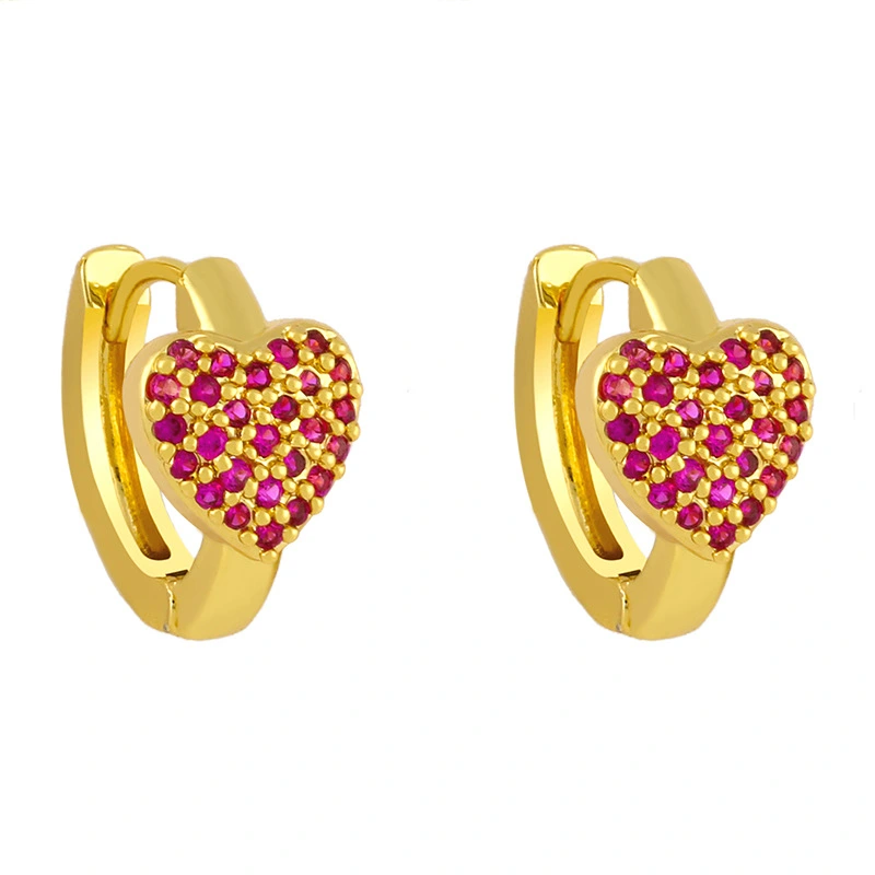 Brincos de amor em liquidação, estilo floresta fria, brincos de zircônia, personalidade, brincos de coração de pêssego, brincos de diamante erw65