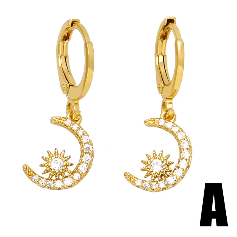 Brincos de amor simples europeus e americanos, brincos femininos de nicho, design de estrela e lua, atacado ert57