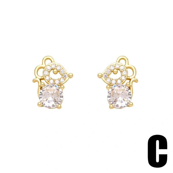 Brincos de alta qualidade para serviços pesados, totalmente incrustados, luxuosos brincos de coração em forma de C, brincos de moda europeus e americanos