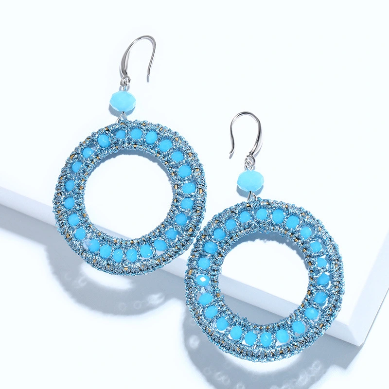 Brincos de argola dupla com miçangas de arroz, estilo europeu e americano, tecidos à mão, brincos da moda erm89