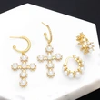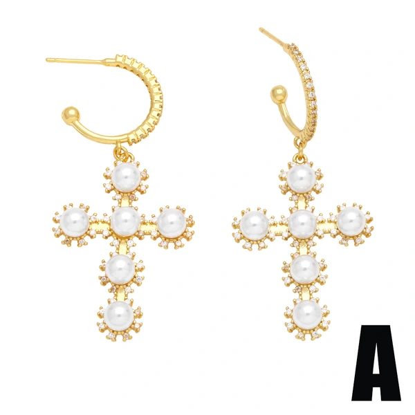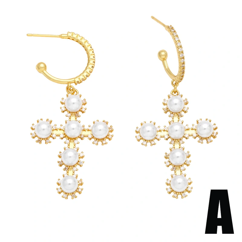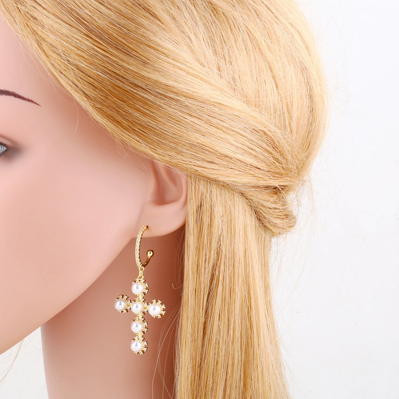 brincos de argola geométricos de pérolas estilo frio, personalidade europeia e americana, brincos de cruz de alta qualidade para mulheres err11