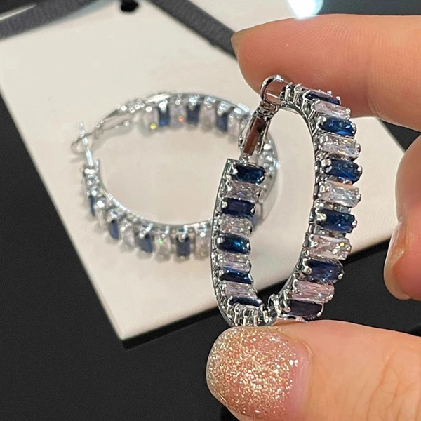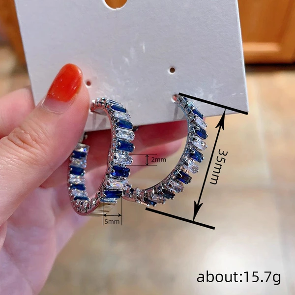 Brincos de argola grandes e exagerados para mulheres, joias de zircônia geométrica quadrilátera, novo estilo de venda quente