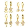 Brincos coreanos elegantes de temperamento antigo, misture e combine brincos ovais com microincrustações de zircónias brilhantes, vendas diretas da fábrica