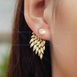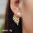 brincos de asas de anjo tridimensionais retro europeus e americanos para mulheres com brincos de piercing de pena de zircónia