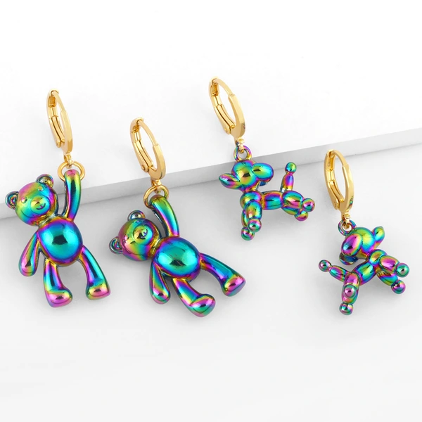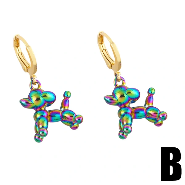 brincos de balão de desenho animado de cachorro, brincos de metal coloridos de hip-hop europeu e americano, joias ery97