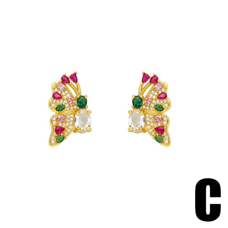 Brincos de borboleta com zircônia colorida da nova tendência 2023, design de moda simples europeu e americano, brincos de alta qualidade era062