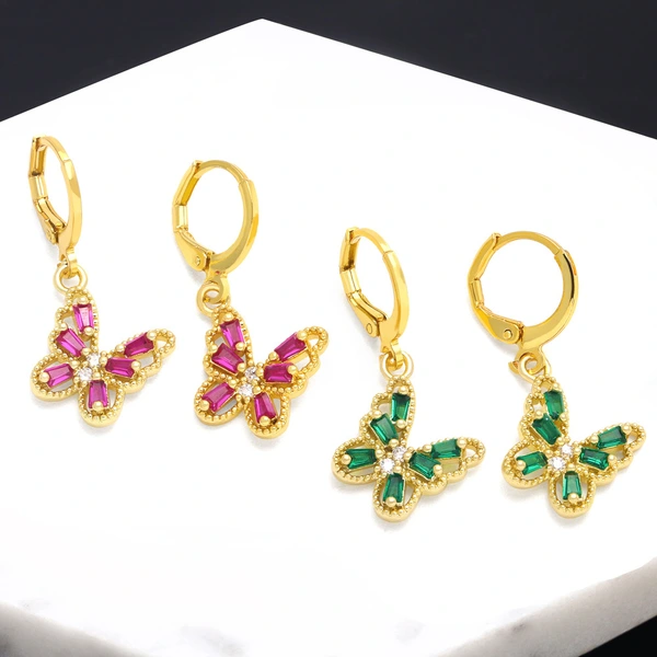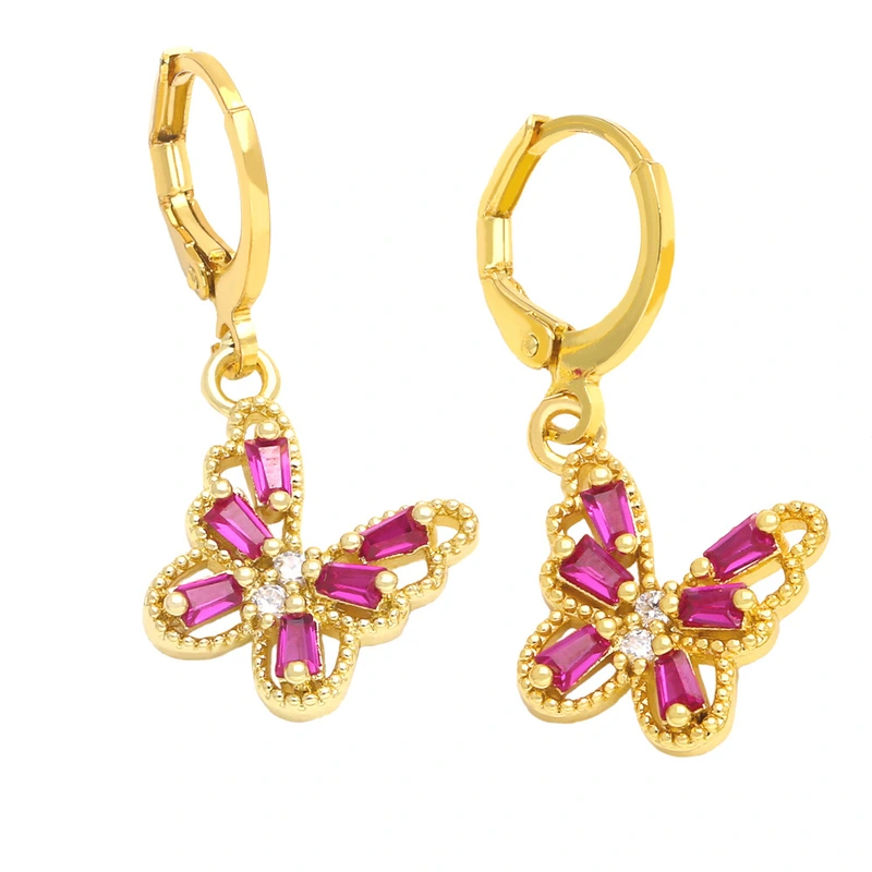 brincos de borboleta para mulheres, design de nicho europeu e americano, brincos de borboleta com micro-zircônias incrustadas e diamantes coloridos, brincos era109