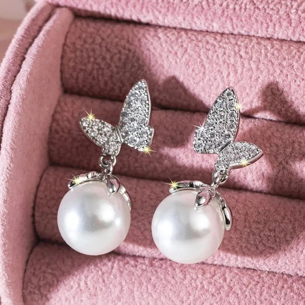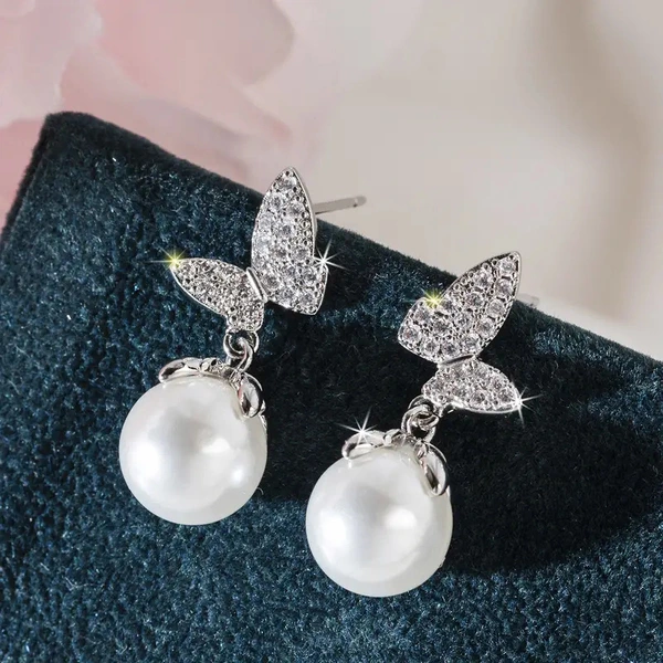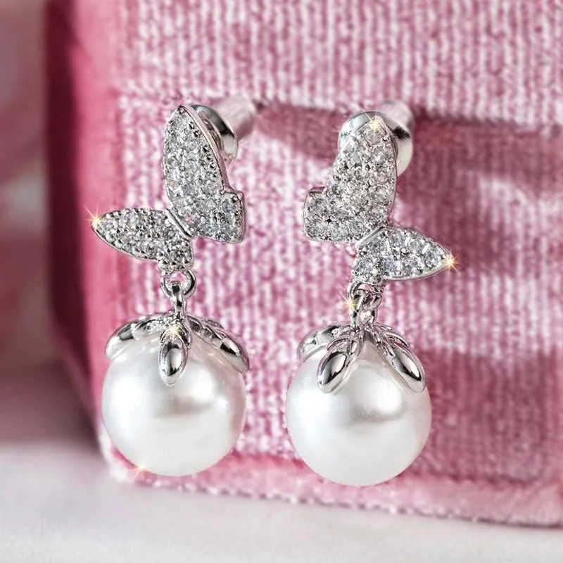 brincos de borboleta retro de pérola simples broche de amor de borboleta xixi brincos de drenagem do mesmo estilo brincos de estilo coreano